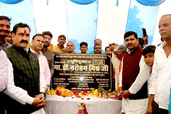 गृह मंत्री डॉ. नरोत्तम मिश्रा ने शनिवार को दतिया जिले के हथलई में एक करोड़ 23 लाख रुपए की सड़क निर्माण कार्य का भूमि-पूजन कर शिलान्यास किया। उन्होंने कहा कि इसके अतिरिक्त 65 लाख रुपए के विकास कार्य भी शीघ्र ही प्रारंभ होंगे। डॉ. मिश्रा ने कहा कि जिले में विकास की बयार बह रही है। विकास के कामों में किसी प्रकार का अवरोध उत्पन्न नहीं होने दिया जाएगा।