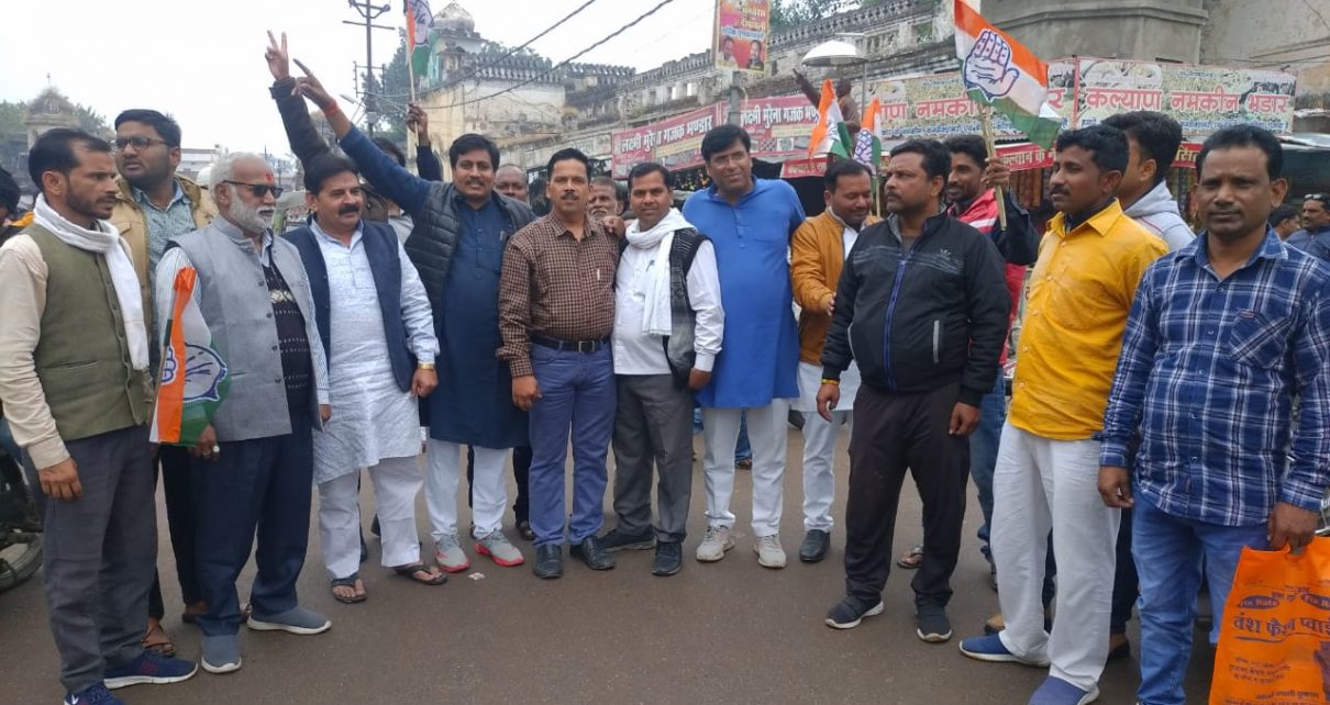 दतिया आज क़िला चौक पर जिला कांग्रेस अध्यक्ष अशोक दांगी बगदा के नेतृत्व में कांग्रेस पदाधिकारियो ने तीनों काले कृषि कानून रद्द होने की खुशी में जमकर नारेबाजी एवं अतिशबाजी की।