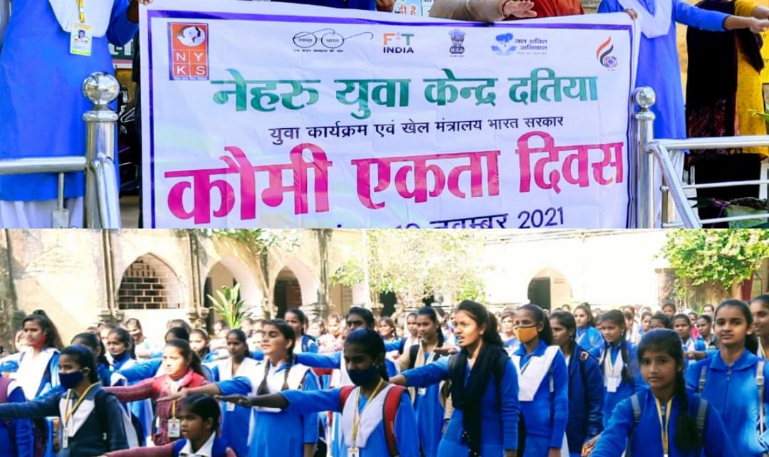 आज कौमी एकता सप्ताह के समापन अवसर पर विवेकानंद युवा मंडल दतिया ने नेहरु युवा केंद्र दिशानिर्देश मै 19 से 25 नवबर तक किया जारहा है जिसके तहत रानी लक्ष्मीबाई कन्या उच्चतर माध्यमिक विद्यालय दतिया मै पाचाय श्रीमती गौरी देवरानी ने छात्राओं को कौमी एकता की शपथ दिलाई इस अवसर पर प्राचार्य श्रीमती गौरी देवरानी ने कहा के यह हम सबका दायित्व है कि हम सभी धर्म सध्दावन सहिष्णुता सौहार्द तथा एकता के साथ रहकर कौमी एकता का परिचय दे और देश का नाम रोशन करे ।इस अवसर पर