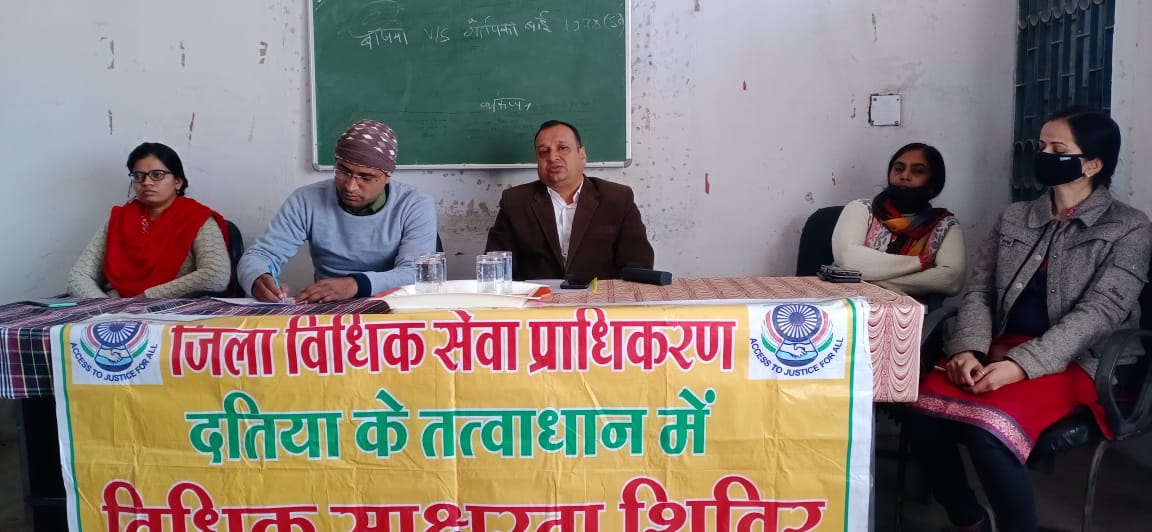 विधिक साक्षरता शिविर का संचालन श्री सत्येन्द्र दिसोरिया (पीएलव्ही)द्वारा किया गया।उक्त आयोजित शिविर में,श्री आशुतोष राय प्राचार्य शासकीय विधि महाविद्यालय दतिया,प्रो0डॉ सूर्या शर्मा,प्रो0 किरण वाला,सुश्री शिल्पी व्यास ग्रंथपाल,श्री सुभाष दाँगी, शैलेंद्र सिंह यादव,सूर्य प्रताप पाठक,दीपक योगी,रानी यादव,सहित समस्त विधि महाविद्यालय के छात्र छात्राएं उपस्थित रहे।