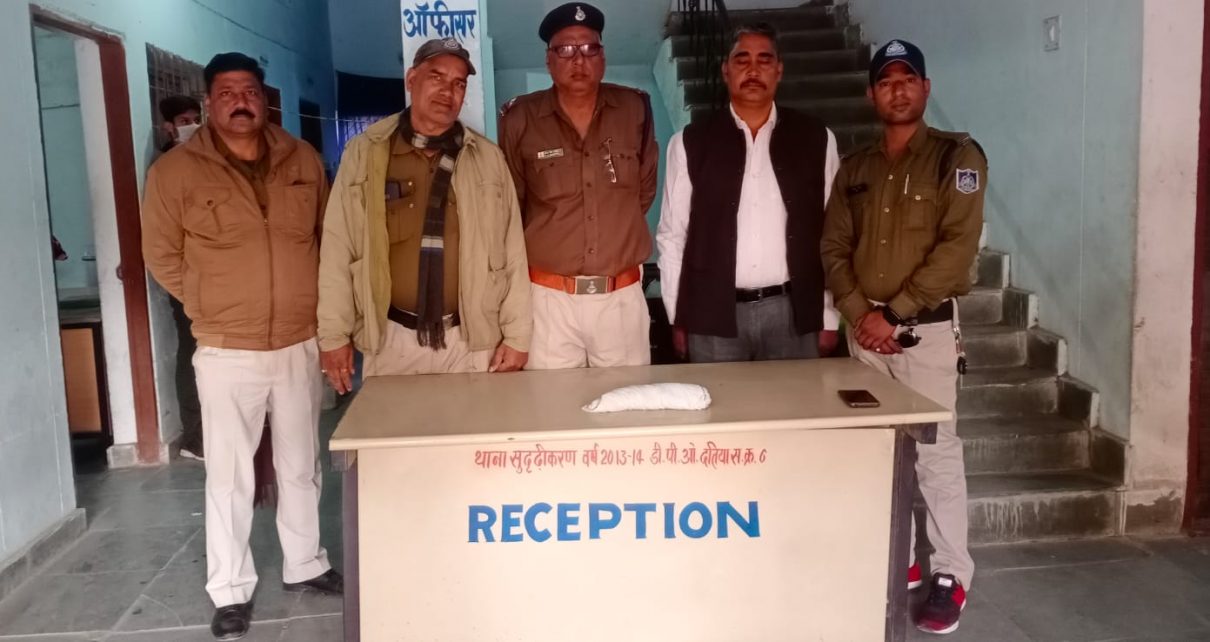 आज दिनांक 21-12-21 को मुखबिर की सूचना पर पानी की टंकी के पास नयाताल पुरा से आरोपी रितिक साहू पुत्र राजकुमार साहू उम्र 19 साल निवासी भदोरिया की खिड़की दतिया के कब्जे से एक 315 बोर का कट्टा मय एक जिंदा कारतूस के जप्त किया गया है ।