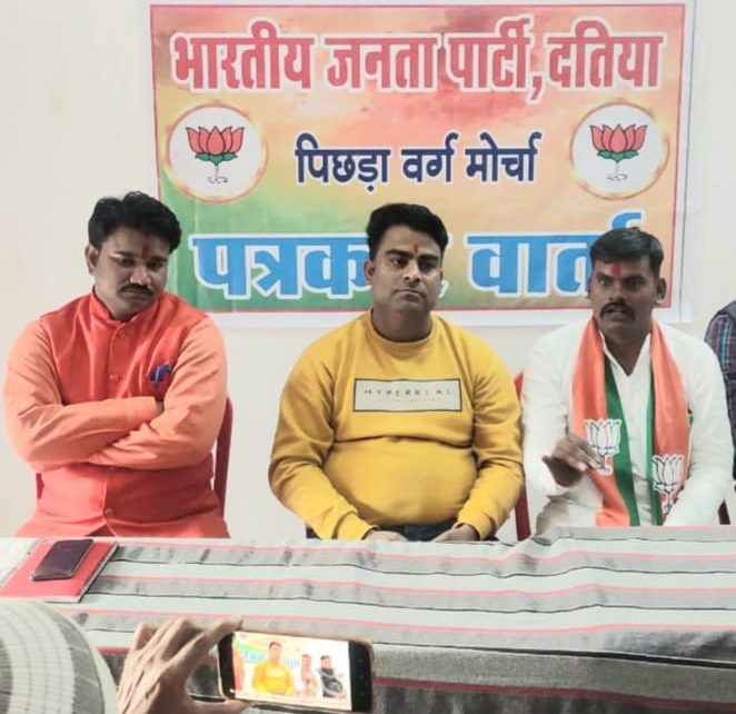 भा ज पा पिछड़ा वर्ग मोर्चा के महामंत्री एवं भा ज पा दतिया ग्रामीण मंडल अध्यक्ष रघुवीर कुशवाह ने कहा कि कांग्रेस की सरकार के अतिरिक्त महाअधिवक्ता ने अतिरिक्त समय मांग लिया, क्या यही कांग्रेस की इच्छा थी? क्या आप चाहते थे कि ओबीसी को आरक्षण न मिले? इससे तो आपकी यही मंशा प्रकट होती है। मैं पूछना चाहता हूं कि कांग्रेस ने ओबीसी की पीठ में छूरा क्यों भोंका। आपने उसे उसका अधिकार नहीं दिया। आपकी सरकार हाथ पर हाथ रखे बैठी रही, आपने इनके कल्याण के लिए कुछ नहीं किया। कांग्रेस हाईकोर्ट के बाद सुप्रीम कोर्ट भी नहीं गई। कांग्रेस ओबीसी के कल्याण का दिखावा करती रही, जबकि हम प्रतिबद्ध हैं कि इस वर्ग को शासकीय सेवा में भी 27% दिया जाए। जिन मामलों में कोर्ट ने स्टे नहीं दिया है, वहां हम ओबीसी को 27% का आरक्षण दे रहे हैं।
