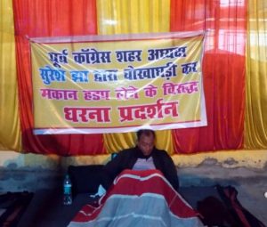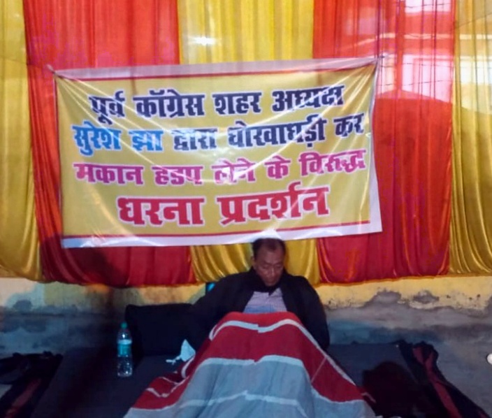 *परेशान होकर पीड़ित बुजुर्ग किला चौक पर अनिश्चितकालीन धरना पर बैठ गया है। वही इस मामले में पूर्व अध्यक्ष शहर कांग्रेस सुरेश झा ने आज प्रेसवार्ता की एव श्री तिवारी द्वारा लगाए गए आरोपो पर दी सफाई कहा कि उन्हें व उनके परिजनों को परेशान किया जा रहा है राजनीतिक दबाव में उनके ख़िलाफ धरना दिया जा रहा है मकान बनाने के पूरे पैसे नही मिले उनको फिर ठगी कहा से हुई।*
