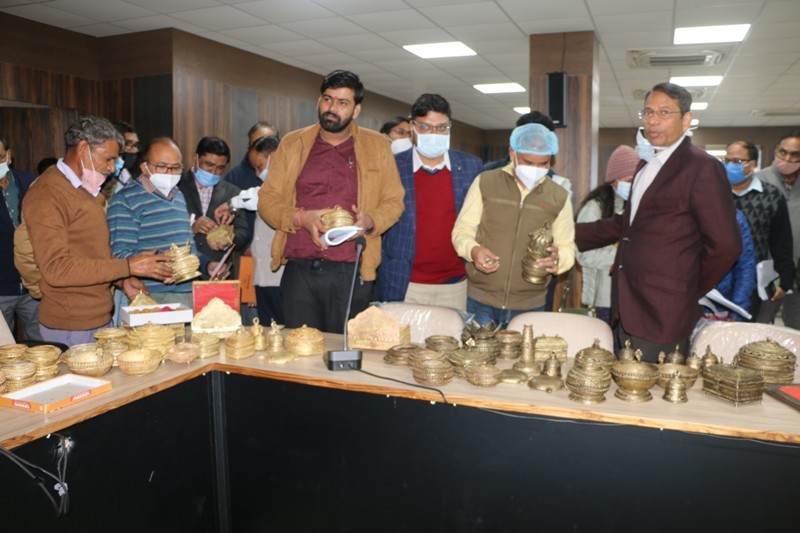 दतिया। जिले के हस्त एवं शिल्प कलाकारों को प्रोत्साहित करने एवं उनकी कला का संरक्षण देने के उद्देश्य से धातु शिल्प कला के कलाकार धनीराम सोनी द्वारा निर्मित आकर्षक एवं सुंदर पीतल की विभिन्न प्रकार की कलाकृतियों की प्रदर्शनी बुधवार को न्यू कलेक्ट्रेट के सभाकक्ष में आयोजित की गई।जो अधिकारियों को खूब भाई,