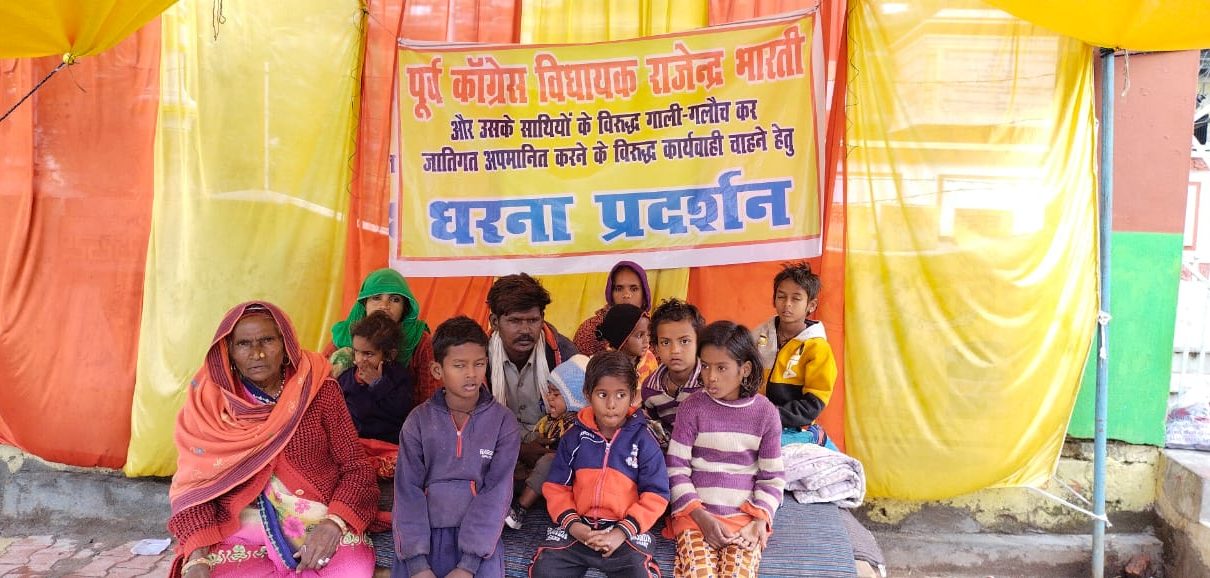 *पूर्व विधायक राजेन्द्र भारती के खिलाफ धरने पर बैठा मोगिया परिवार