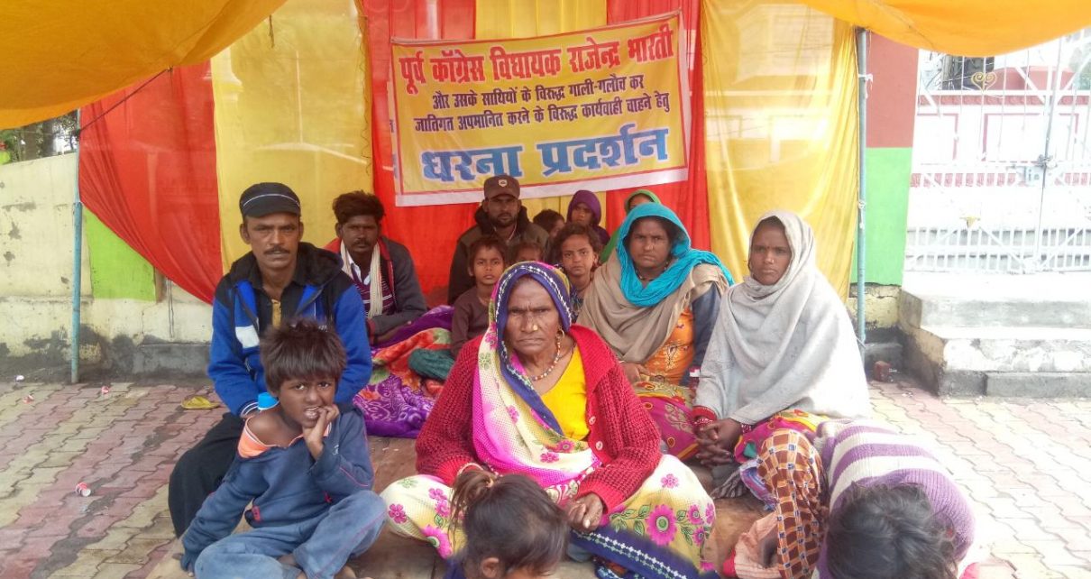 *पूर्व विधायक राजेंद्र भारती और उनके सहयोगियों पर मामला दर्ज करने की मांग को लेकर धरने पर बैठा मोगिया परिवार।*