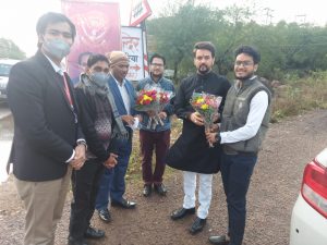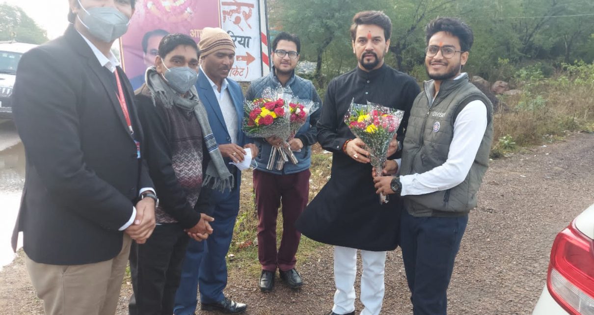 दतिया। मां पीतांबरा की नगरी में आगमन पर केंद्रीय मंत्री माननीय अनुराग ठाकुर मंत्री युवा कार्यक्रम व खेल मंत्रालय , सूचना एवं प्रसारण मंत्रालय भारत सरकार का राज्य निदेशक रुचित्र नारायण त्यागी जी के निर्देशन में डिप्टी डायरेक्टर श्री राकेश तोमर, जिला युवा अधिकारी कपिल सेन, सदस्य डीएसीवाईपीपी राम जी चरण राय, लेखाकार गौरी शंकर शर्मा, एनवाईवी अंकित शर्मा के द्वारा भावपूर्ण स्वागत बंधन अभिनंदन कीजिए नेहरू युवा केंद्र की टीम के द्वारा माननीय केंद्रीय मंत्री अनुराग ठाकुर पुष्पागुच्छ, शॉल व श्रीफल से स्वागत किया गया।