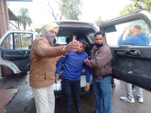 दतिया। रेलवे ब्रिज ऊपर तेज गति से जा रही बोलेरो ने बाइक सवार में मारी टक्कर, तीन लोग घायल डायल हंड्रेड दे घायलों को पहुंचाया चिकित्सालय। जानकारी के मुताबिक शनिवार सुबह 8:00 बजे लगभग डायल हंड्रेड इवेंट मिला की झांसी चुंगी रेलवे ब्रिज के ऊपर अज्ञात बोलेरो गाड़ी ने बाइक सवार में टक्कर मार दी सूचना मिलते ही एफआरबी वन स्टॉप आरक्षक काश्मीर सिंह और पायलट मजीद खान घटनास्थल पर पहुंचे। तो देखा बाइक सवार 3 लोग घायल अवस्था में पड़े हैं। घायल सुनील पुत्र प्रेम नारायण बंशकार,रामअवतार पुत्र हनुमंत बंशकार, लक्ष्मण पुत्र घनश्याम कुशवाह तीनों लोग उदगुवा से दतिया आ रहे थे तभी अज्ञात बोलेरो ने टक्कर मार दी जिससे वह गंभीर घायलों को एफआरबी वन स्टॉप आरक्षक काशमीर सिंह और पायलट मजीद खान उपचार के लिए जिला अस्पताल भर्ती किया।