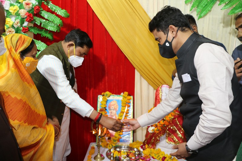 लोक निर्माण राज्यमंत्री एवं प्रभारी मंत्री सुरेश धाकड़ ने स्वामी विवेकानंद जयंती की उपस्थित सभी जनों को शुभकांमनाएं देते हुए कहा कि सम्पूर्ण प्रदेश में स्वामी विवेकानंद जी के जन्म दिवस को रोजगार दिवस के रूप में मनाया जा रहा है। उन्होंने कहा कि स्वामी विवेकानंद जी के संदेशों को अपने जीवन में आत्मसात करना होगा। लोक निर्माण राज्यमंत्री ने कहा कि कोरोना के बढ़ते प्रकरणों को देखते हुए पूरी सावधानी एवं सर्तकता वरतें इससे बचने हेतु मास्क लगायें, सोशल डिस्टेसिंग का पालन करें और अति आवश्यक कार्य होने पर ही घर से बाहर निकलें।