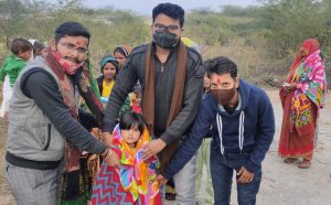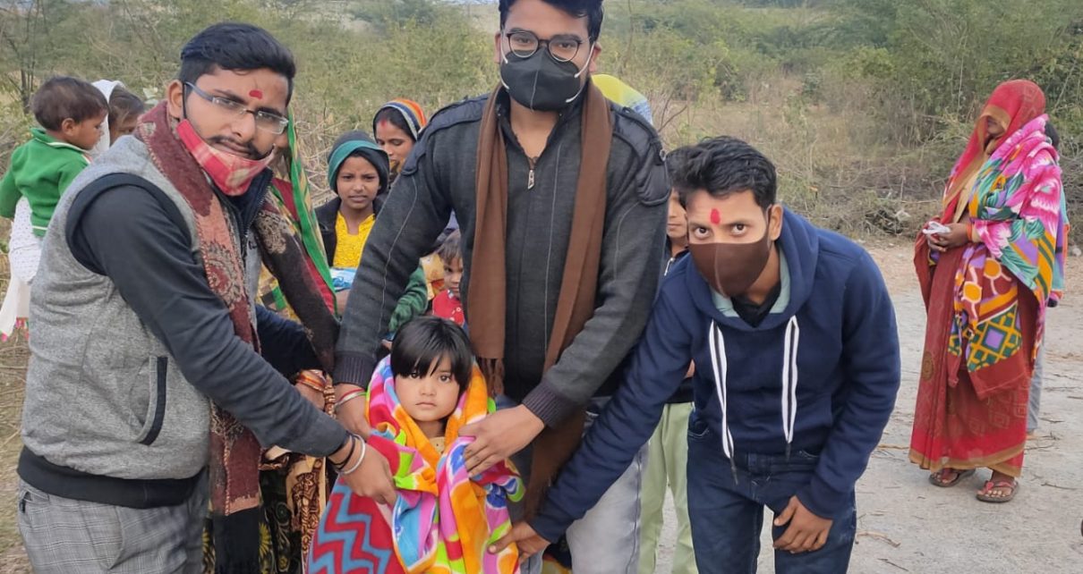 युवा गहोई सेना दतिया के सदस्यों ने जरूरतमंदों को कंबल बांटे।