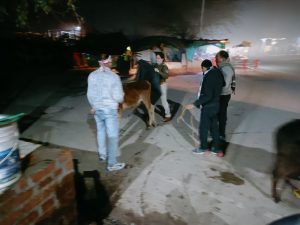 ठंड में ठिठुरते मवेशियों को सिविल लाइन थाना प्रभारी ने बांधे कंबल