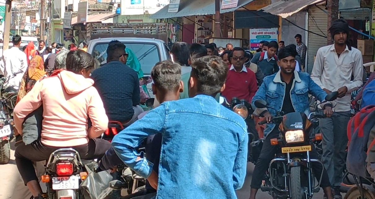 दतिया:शहर के बीचोबीच भारतीय स्टेट बैंक के पास नहीं है पार्किंग की व्यवस्था लगता है जाम