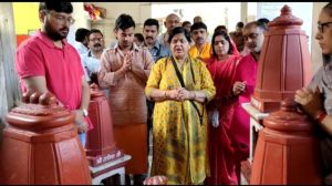 कैबिनेट मंत्री उषा ठाकुर ने की पीताम्बरा पीठ पर पूजा अर्चना कर प्रसाद वितरण किया