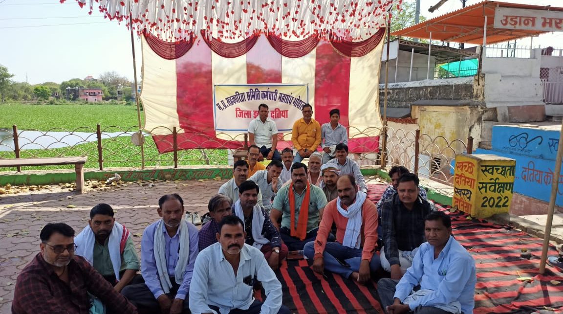 दतिया। मध्य प्रदेश सहकारिता समिति कर्मचारी महासंघ भोपाल के आवाहन पर दतिया जिले में समस्त सहकारिता समिति कर्मचारी संघ द्वारा अनिश्चितकालीन हड़ताल जारी है। जिसको लेकर सहकारिता समिति कर्मचारी संघ के पदाधिकारी एवं कार्यकर्ता गण स्थानीय गांगुटिया मंदिर सीता सागर के पास धरने पर बैठे हुए हैं और धरने के माध्यम से लंबित चली आ रही नियमित करने की मांग एवं नियमित वेतन मान दिए जाने की मांग को लेकर अपनी आवाज बुलंद कर रहे हैं।उल्लेखनीय है कि यह अनिश्चितकालीन हड़ताल सहकारिता कर्मचारी महासंघ द्वारा सरकार को अपने पत्र के माध्यम से पहले ही अवगत करा दिया गया था। इसके संबंध में 21 मार्च से 1 अप्रैल तक धरना प्रदर्शन कर आंदोलन की रूपरेखा तय की गई थी। आंदोलन की शुरुआत से सहकारिता समिति कर्मचारी संघ धरना प्रदर्शन पर बैठा हुआ है और हड़ताल जारी है। वही सहकारिता समिति कर्मचारी संघ द्वारा 1 अप्रैल को प्रदेश के समस्त कर्मचारी भोपाल पहुंचकर सीएम हाउस का घेराव का जंगी प्रदर्शन करेंगे। सहकारी समिति कर्मचारी संघ काफी समय से अपनी समस्त कर्मचारियों को नियमित वेतनमान दिए जाने एवं नियमितीकरण किए जाने की मांग कर रहा है। जिस के संबंध में 10 मार्च 2022 को सहकारिता मंत्री की घोषणा अनुसार समस्त कर्मचारियों को नियमित वेतनमान दिए जाने के निर्देश दिए गए थे। परंतु आज तक कर्मचारियों को नियमित वेतनमान नहीं दिया जा रहा है ना ही नियमितीकरण की कार्रवाई की गई है। जिसको लेकर एक बार फिर मध्य प्रदेश सहकारिता समिति कर्मचारी महासंघ आंदोलन की राह पकड़े हुए हैं। दतिया जिले में अनिश्चितकालीन हड़ताल पर बैठे समिति कर्मचारी संघ के जिला अध्यक्ष राकेश शर्मा, जसवंत सिंह परिहार,सतीश श्रीवास्तव, सुरेश यादव,नीरज यादव, जितेंद्र कुमार त्रिपाठी, भैयालाल सविता, विनोद सिंह गुर्जर, अशोक कुमार अहिरवार, राम जी दांगी, अरविंद तिवारी, मनोज शर्मा, हर्षवर्धन राजपूत, लक्ष्मीनारायण जाटव, प्रशांत शर्मा, श्रीराम यादव, हरिकिशन शर्मा , कन्हैया लाल निरंजन, प्रमोद सिंह कमरिया, राजीव सिंह यादव , महेंद्र सिंह कुशवाहा आदि कर्मचारी धरने पर बैठे हुए हैं।