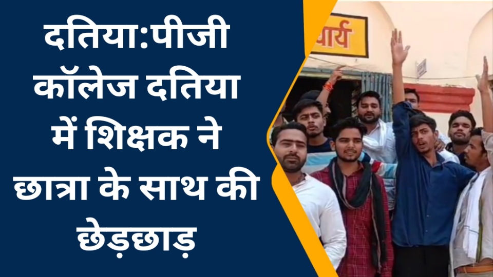 दतिया के शासकीय पीजी कॉलेज में शिक्षक के द्वारा छात्रा के साथ की छेड़छाड़ दिनांक 31 मार्च को पीजी कॉलेज के छात्र बॉटनी विभाग से अपना प्रैक्टिकल देकर बाहर आ रही थी तभी बॉटनी विभाग में पदस्थ शिक्षक बृजेश जाटव के द्वारा छात्रा से नमस्ते की गई और शिक्षक ने छात्रा से कहा कि आप हमारी कंपनी ज्वाइन कर ले और कहां आप हमारे घर पर आइए और छेड़छाड़ करने लगा इसी को लेकर छात्रा ने अखिल भारतीय विद्यार्थी परिषद के साथ मिलकर शिक्षक बृजेश जाटव के खिलाफ कॉलेज के प्राचार्य को ज्ञापन सौंपा तत्पश्चात कॉलेज के प्रिंसिपल ने बताया कि इस मामले को लेकर अभी हम ज्यादा जानकारी नहीं दे पाएंगे हमने 5 लोगों की कमेटी जो शासन के नियमानुसार होती है उसको बनाई है जिससे इस पर जांच हो सके और जांच होने के उपरांत ही हम कोई भी फैसला ले पाएंगे वही छात्रा ने दतिया कोतवाली थाना क्षेत्र में आवेदन दिया कोतवाली पुलिस ने मामले को संज्ञान में लेकर विवेचना में लिया