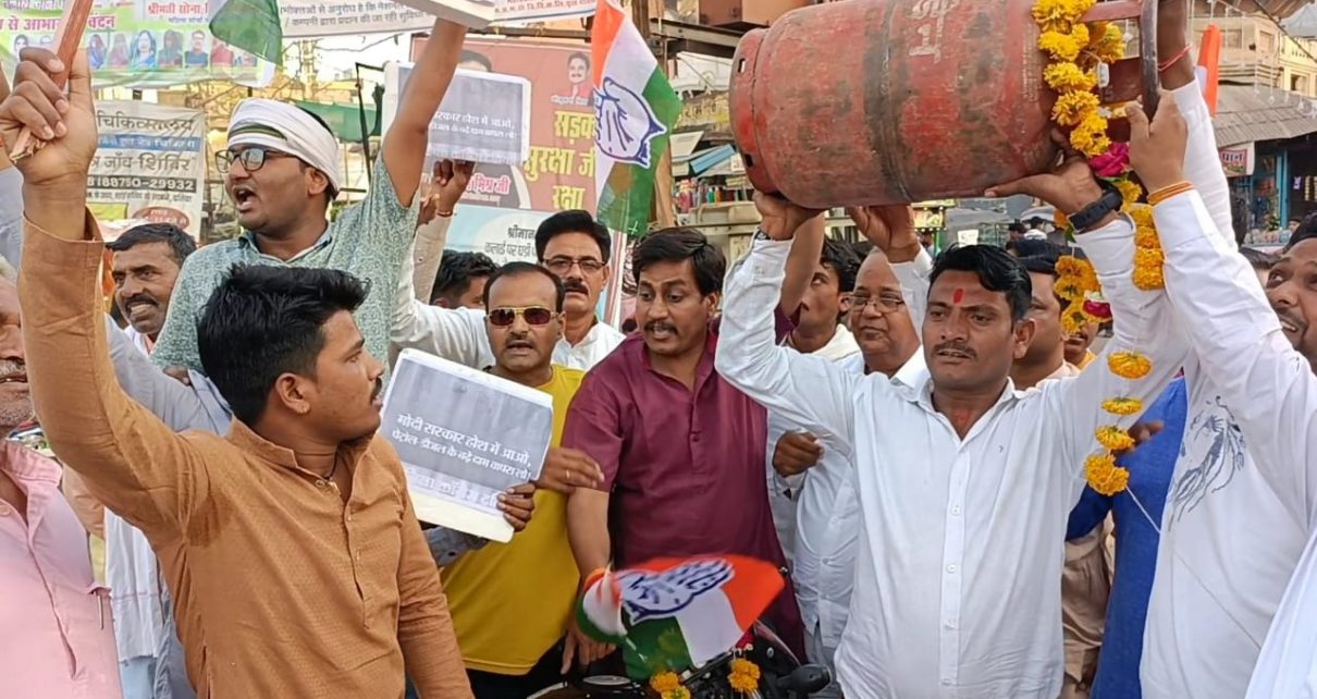 दतिया।देश में बढ़ती हुई महंगाई बढ़ती हुए पेट्रोलियम पदार्थों के विरोध में कांग्रेस पार्टी के द्वारा एक साथ 31 मार्च को पूरे देश में प्रदर्शन किया गया इसी कड़ी में दतिया जिला कांग्रेस कमेटी के जिलाध्यक्ष अशोक दांगी बगदा के नेतृत्व में किला चौक मैदान पर विरोध प्रदर्शन किया गया किला चौक मैदान पर कांग्रेसियों के द्वारा गैससिलेंडर को जमीन पर रखकर माला पहनाई एवं मोटरसाइकिल को रखकर जमकर केंद्र सरकार और प्रदेश सरकार के विरोध में नारेबाजी की इस अवसर पर जिला कांग्रेस कमेटी के अध्यक्ष अशोक दांगी ने बताया की महंगाई ने आम आदमी की कमर तोड़ दी है महंगाई की वजह से लोगों के घरों का बजट बिगड़ गया है भाजपा सरकार ने देश के लोगों की आमदनी को कम कर दी है हम इस बेतहाशा महंगाई का विरोध प्रदर्शन कर भाजपा सरकार का ध्यान आकर्षित करने की कोशिश कर रहे हैं इस अवसर पर नारायण सिंह बाबूजी, आनंद चौबे, अजय शुक्ला,अनिल राज श्रीवास्तव विष्णु प्रताप गुर्जर,रजजन खान अभिषेक तिवारी, नरेंद्र गुर्जर,विक्रम दांगी तैडोत जसवंत सिंह बघेल, संजू दांगी, अरुण खटीक, राहुल कमरिया, रिंकू यादव,रामदास उत्साही, ,सेठी साहू स्वदेश अहिरवार अमरीश बाल्मीक, जीतू कुशवाह, मोहन कुशवाहा, अमन ठाकुर श्यामसुंदर झा, प्रदीप माझी सुनील पांचाल रवि रजक,आदि मौजूद रहे।