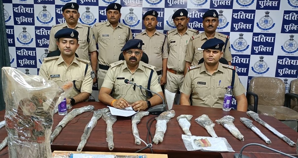दतिया/अबैध हथियार की फैक्ट्री पर पंडोखर पुलिस ने मारी दबिश, अंतरराज्यीय बदमाश सहित एक दर्जन हथियार बरामद