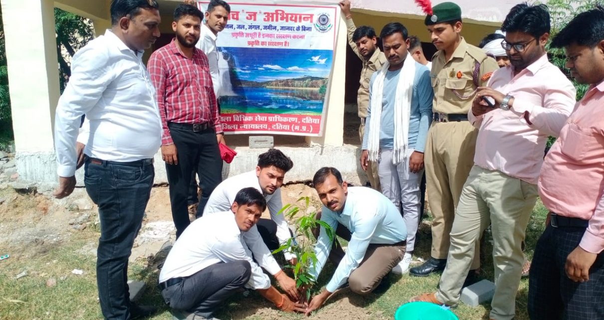 दतिया| राष्ट्रीय विधिक सेवा प्राधिकरण नई दिल्ली एवं मध्य प्रदेश राज्य विधिक सेवा प्राधिकरण जबलपुर के निर्देशानुसार एवं प्रभारी प्रधान जिला एवं सत्र न्यायाधीश एवं अध्यक्ष महोदय श्री मधुसूदन मिश्र जी के निर्देशानुसार एवं जिला जज एवं सचिव जिला विधिक सेवा प्राधिकरण दतिया श्री मुकेश रावत जी के मार्गदर्शन में आज दिनांक: 05 जून 2022 को राज्य विधिक सेवा प्राधिकरण जबलपुर द्वारा दिए गए निर्देश के पालन में 05 जून से 12 जून तक पर्यावरण को संरक्षित एवं जागरूकता फैलाने के उद्देश्य से पर्यावरण सप्ताह बनाये जाने का निर्णय लिया गया,इसी तारतम्य में पर्यावरण दिवस के अवसर पर प्रक्षारोपण कार्यक्रम एवं विधिक जागरूकता कार्यक्रम का आयोजन किया गया।