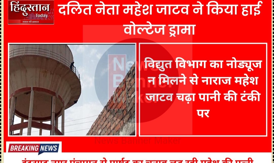 *दलित नेता महेश जाटव का हाई वोल्टेज ड्रामा।* विद्युत विभाग से नो ड्यूज नहीं मिलने से नाराज महेश पानी की टंकी पर चढ़ा
