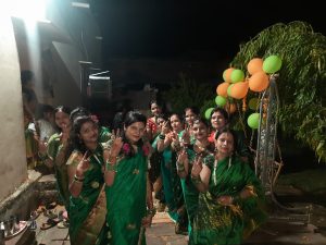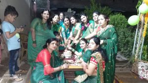 भितरवार — हरियाली अमावस्या से हरियाली तीज का त्योहार शुरू हो गया है और यह पर्व रक्षाबंधन तक मनाया जाएगा। इसी पर्व के चलते बुधवार को भी वार्ड नं 10 में एक निजी गार्डन में फ्रेंडशिप ग्रुप के द्वारा सादगी पूर्ण तरीके से हरियाली तीज उत्सव एवं फ्रेंडशिप डे मनाया गया । सौभाग्यवती स्त्रियों के लिए यह महत्वपूर्ण व्रत और त्योहार है। यह त्यौहार भगवान शिव और माता पार्वती के पुनर्मिलन होने पर मनाया जाता है। सावन के महीने में झूला झूलने का भी सिलसिला हरियाली तीज से शुरू हो जाता है इसी प्रकार महिलाए भी हरी-भरी प्रकृति के आनंद से भावविभोर होकर श्रावण पूर्णिमा तक हरियाली तीज के त्यौहार को मनाती है। और श्रावण पूर्णिमा तक कई तरह के आयोजनों में सामूहिक रूप से भाग लेती है इसी के चलते महिलाओं ने बुधवार को वार्ड नंबर 10 स्थिति के निजी गार्डन में हरियाली तीज के त्यौहार के साथ ही फ्रेंडशिप डे पूरे हर्ष और उल्लास के साथ मनाया। इस दौरान हरियाली के रंगों में हरे वस्त्र धारण करके महिलाओं ने जहां फ्रेंडशिप डे मनाते हुए हरे आकृति के केक को काटा और एक दूसरे को बांटा और नाचते गाते हुए तीज के साथ फ्रेंडशिप डे को भी धूमधाम से मनाया। जिसमें प्रमुख रुप से बंदना अग्रवाल , नेहा अग्रवाल , पूजा अग्रवाल , पिंकी साहू , ऋतु भार्गव , संगीता शर्मा , मुनमुन , कल्यानी राजावत , परी अग्रवाल , रेखा पाठक , कल्पना पाठक , भावना रावत सहित अन्य महिलाएं उपस्थित रही ।