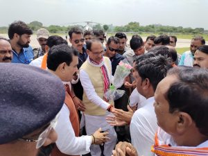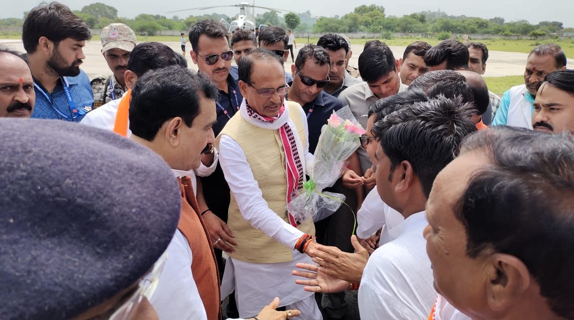 मुख्यमंत्री श्री चौहान विमानतल से हेलिकॉप्टर द्वारा दतिया के लिए रवाना।