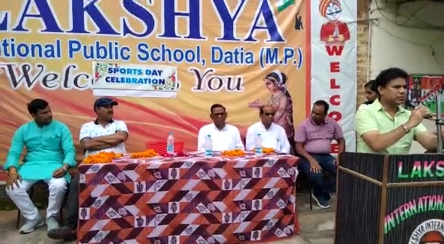 दतिया । हाकी के जादूगर मेजर ध्यानचंद के जन्मदिन खेल दिवस के अवसर पर लक्ष्य इंटरनेशनल स्कूल में खेल प्रतियोगिताओं का शुभारंभ जिला पंचायत सीईओ और मुख्य अतिथि कमलेश भार्गव ने किया । इस अवसर पर विशिष्ट अतिथि के रूप में डॉ रामजी करें, युवाखेल समन्वयक संजय रावत उपस्थित रहे । कार्यक्रम की अध्यक्षता सलीम खान अध्यक्ष मुस्लिम समाज द्वारा की गई । कार्यक्रम के प्रारंभ में विद्यालय के डायरेक्टर राशिद खान ने सभी अतिथियों के सम्मान में स्वागत भाषण देते हुए हाकी के जादूगर मेजर ध्यानचंद के बारे में छात्र-छात्राओं को जानकारी देकर खेल दिवस का महत्व बताया । कार्यक्रम में बतौर मुख्य अतिथि बोलते हुए कमलेश भार्गव ने खेलों को बढ़ावा देने की बात कही और खेलों को जीवन का आवश्यक अंग बताया । विशेष अतिथि डॉ रामजी खरे, संजय रावत और अध्यक्ष सलीम खान ने भी छात्र छात्राओं को संबोधित किया । विद्यालय प्रबंधन की ओर से कमलेश भार्गव को शाल श्रीफल एवं सम्मान पत्र देते हुए वृक्ष मित्र के रूप में किया । सभी अतिथियों द्वारा फीता काटकर खेल प्रतियोगिताओं का शुभारंभ किया गया । मुख्य अतिथि कमलेश भार्गव और अध्यक्ष सलीम खान ने बैडमिंटन खेल कर खेलों की शुरुआत की । विद्यालय परिवार द्वारा छात्र-छात्राओं के बैडमिंटन,कैरम, खो-खो,चेयर रेस,स्पून रेस, कबड्डी एवं रस्सी खींच आदि खेलों का आयोजन किया गया एवं विजयी छात्र-छात्राओं को पुरस्कृत करते हुए प्रमाण पत्र प्रदान किए गए । इस अवसर पर विद्यालय के शिक्षक शिक्षिकाओं में राकेश कुमार,प्रदुम्न पाठक,पवन सोनी,सुमन रावत,अमरीन खान, तबस्सुम खान, कल्पना राजावत,सिमरन खान, आसिना खान,गुलनाज खान, के साथ अभिभावकों की उपस्थिति रही । कार्यक्रम के अंत में स्कूल की प्रबंधक नसरीन खान ने सभी अतिथियों का