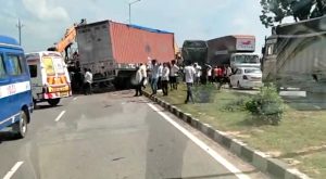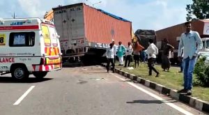 चिरुला थाना क्षेत्र के ग्वालियर झांसी मार्ग NH 44 पर स्थित डगरई टोल प्लाजा के पास सोमवार दुपहर तेज रफ्तार दो ट्रक आमने-सामने टकरा गए