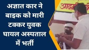 पिंटू पिता नारायण दास उम्र 32 वर्ष निवासी समथर उत्तर प्रदेश, युवक दतिया में रिश्तेदार के यहां शादी समारोह में शामिल होने के लिए आया हुआ था, शादी समारोह कर वह अपनी बाइक से समथर जा रहा था बिडनिया के पास अज्ञात कार ने बाइक में टक्कर मार दी जिसमें युवक गंभीर रूप से घायल हो गया जिसे उपचार के लिए जिला अस्पताल में भर्ती कराया गया यहां उपचार जारी है