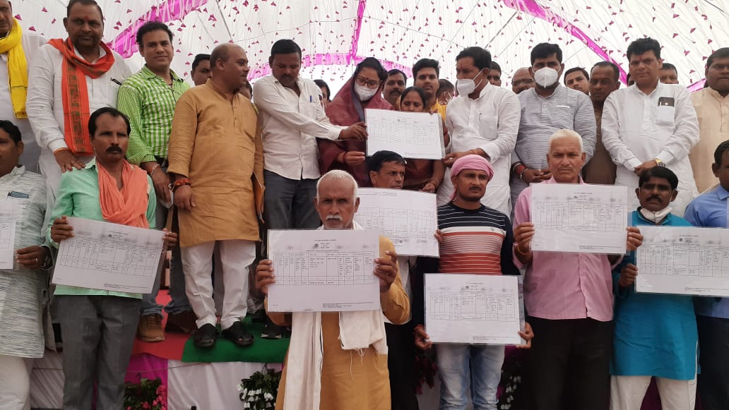 दतिया जिले के भांडेर में आयोजित स्वामित्व योजना के तहत लोक निर्माण राज्यमंत्री एवं जिले के प्रभारी श्री सुरेश धाकड़ ने क्षेत्रीय सांसद श्रीमती संध्या राय की उपस्थिति